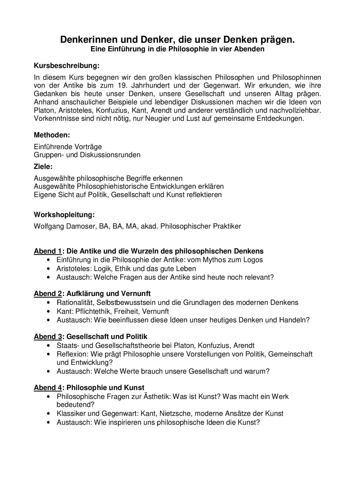 Prägende Denkerinnen und Denker Do. 09.04.-30.04.2026 / 18:00h-19:30h / € 160,-