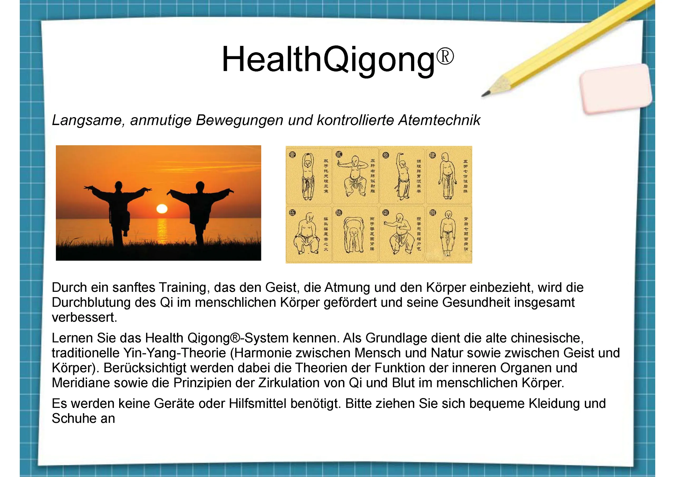Mit QiGong zu innerer Ruhe Di. 03.02.-07.04.2026 / 09:00h-10:15h / € 280,- bzw. 3x € 95,-