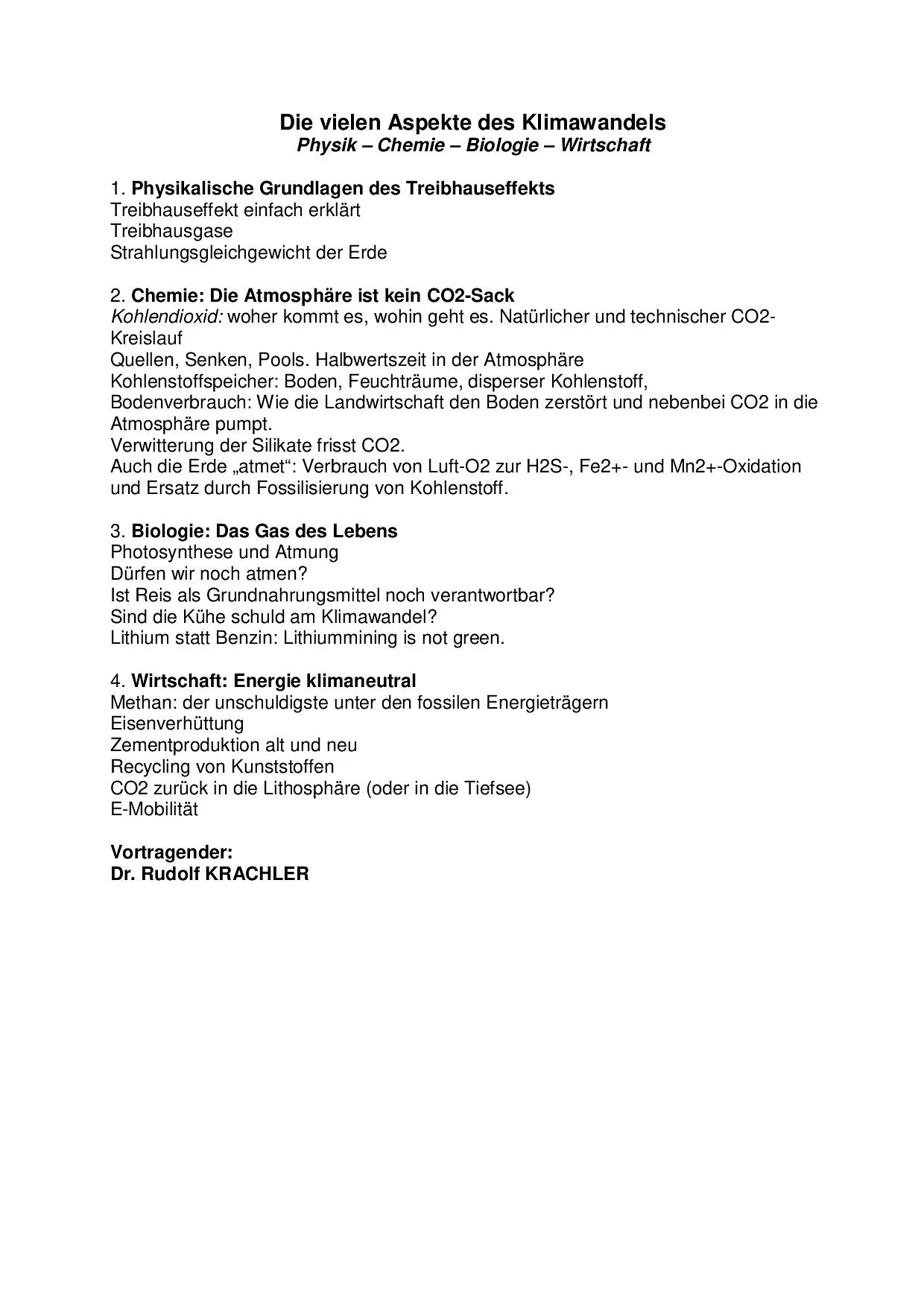 Die vielen Aspekte des Klimawandels Do. 09.04.-30.04.2026 / 15:00h-16:30h / € 95,-